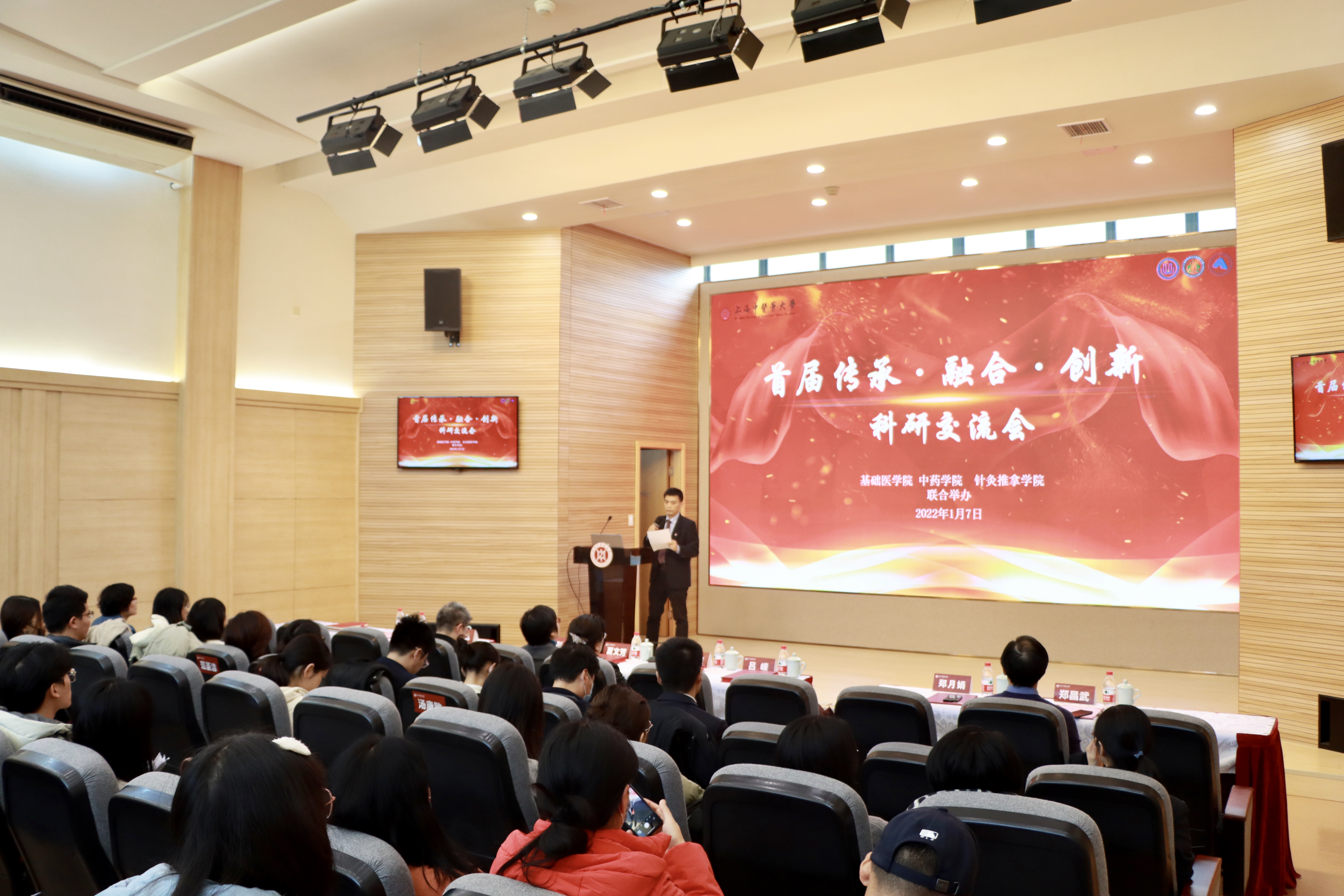 为更好促进学科交融和合作,传承发展中医药事业,由基础医学院、中药学院和针灸推拿学院联合策划,首届“传承·融合·创新”科研交流会于1月7日下午在beat365官网全球合作伙伴中心报告厅举办。基础医学院党委书记夏文芳、院长吕嵘、副院长郑月娟,中药学院党委书记沈岚、院长张彤、副院长郑昌武,针灸推拿学院党总支书记陈秋生、院长赵琛和多个学院的师生共同出席会议。会议由郑月娟主持。