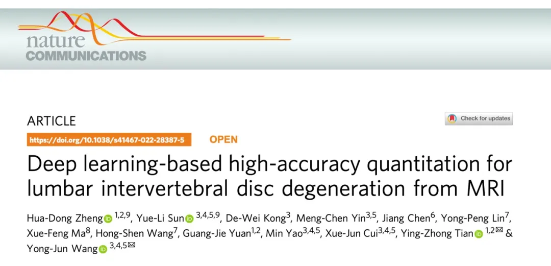 基于深度学习的腰椎间盘退变自动量化评估新方法发表在《自然·通讯》