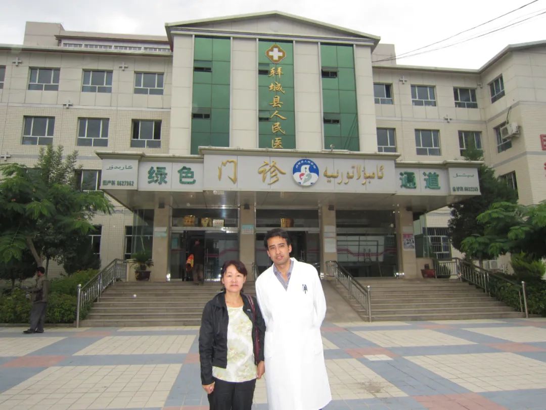 ▲洪汉英在新疆拜城县人民医院调研。本人供图