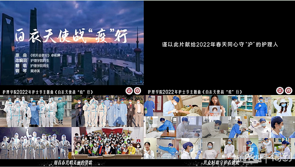 护理学院师生改编、录制了2022年“5·12”国际护士节主题曲MV《白衣天使战“疫”行》歌曲,共同用声音的力量致敬这场申城战疫中向光而行的护理人!