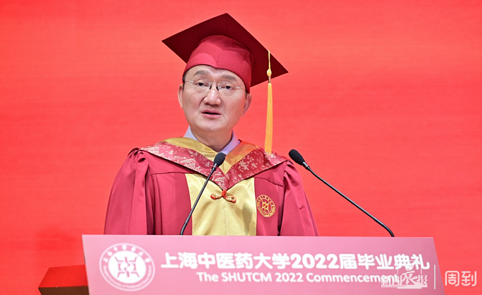 他希望毕业生们把自己的人生投入到传承千年的中医药事业当中,继承裘沛然、朱南孙、刘嘉湘、施杞、严世芸等老前辈们的初心,守正创新,传承发展。志存高远才能登高望远,胸怀天下才能大展宏图。