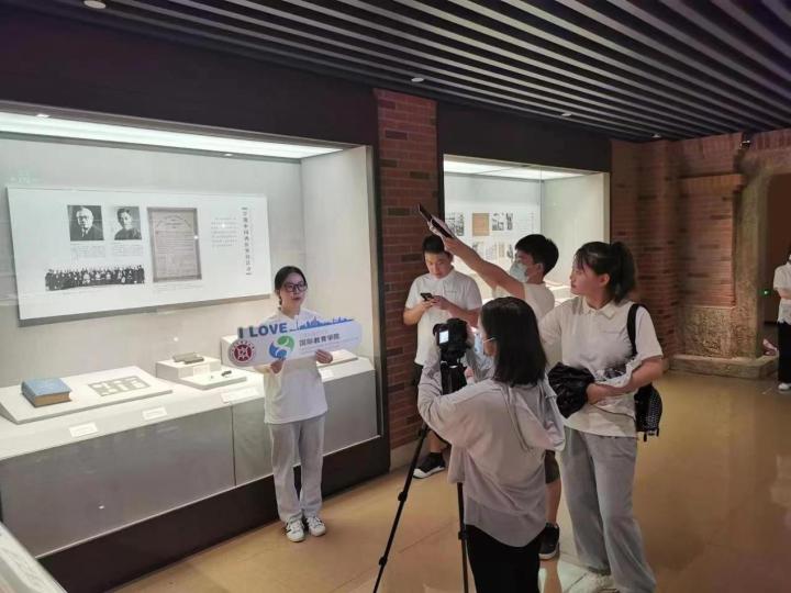 学校暑期社会实践“讲好中国故事——我在中医药博物馆讲文物”项目,团队成员在上海中医药博物馆拍摄视频