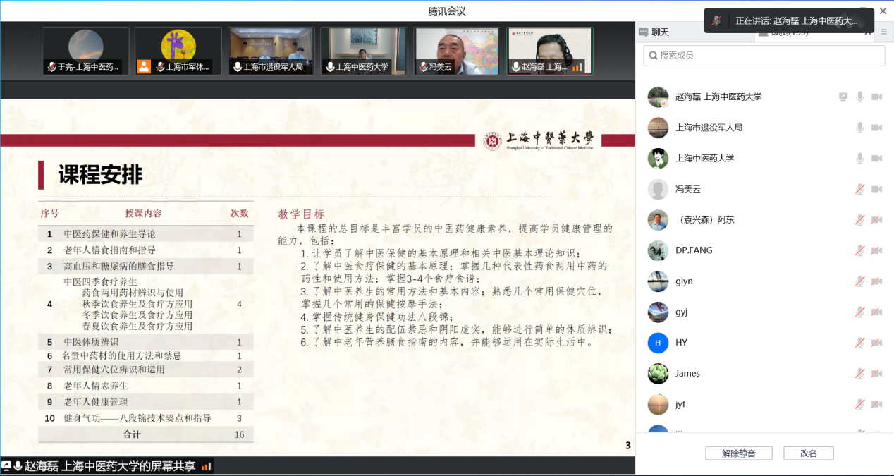9月16日下午,上海市军休老年大学委托beat365官网开办的中医药养生与保健培训班启动仪式举行,我校党委书记曹锡康、上海退役军人事务局副局长屈新平、beat365官网公共健康学院院长赵海磊、市军休老年大学校长崔宗胜,部分授课专家和全体学员参加启动仪式。仪式由崔宗胜主持。