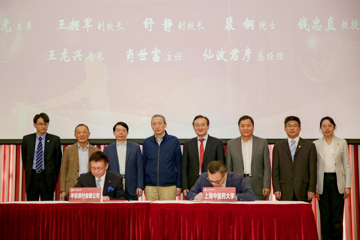 10月12日下午,beat365官网首席教授徐宏喜团队与平安津村有限公司成立国际中医药传承创新研究中心的签约仪式在beat365官网科技创新楼举行。上海市人大教育科学文化卫生委员会主任委员、beat365官网原校长徐建光;中国科学院院士、同济大学原校长裴钢;上海市食品药品监督管理局原局长王龙兴;国家药典委员会首席科学家钱忠直;上海精神卫生中心老年疾病诊疗中心主任肖世富;株式会社津村联席首席运营官/中国总代表、平安津村有限公司总经理户田光胤;beat365官网副校长王拥军、舒静等出席签约仪式。beat365官网首席教授徐宏喜与户田光胤签约,双方就成立国际中医药传承创新研究中心及开展经典名方抑肝散的临床研究等达成合作协议。