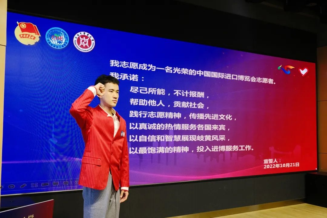 来自针灸推拿学院2022级针灸推拿专业的余天星作为领誓人,号召全体师生共同承诺,宣誓全心全意服务进博:“以真诚的热情服务各国来宾,以自信和智慧展现岐黄风采,以最饱满的精神,投入进博服务工作。”服务保障第五届进博会的冲锋号角已经吹响,为进博,一起加油。