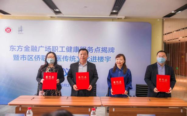 为以中医为媒、推动“为侨服务”常态长效,活动现场进行了陆家嘴金融贸易区“健康服务点”揭牌和楼宇健康服务项目共建签约,力求以“市区互动、校区联动、跨区协同”的合作机制,推动传统中医药文化进楼宇。