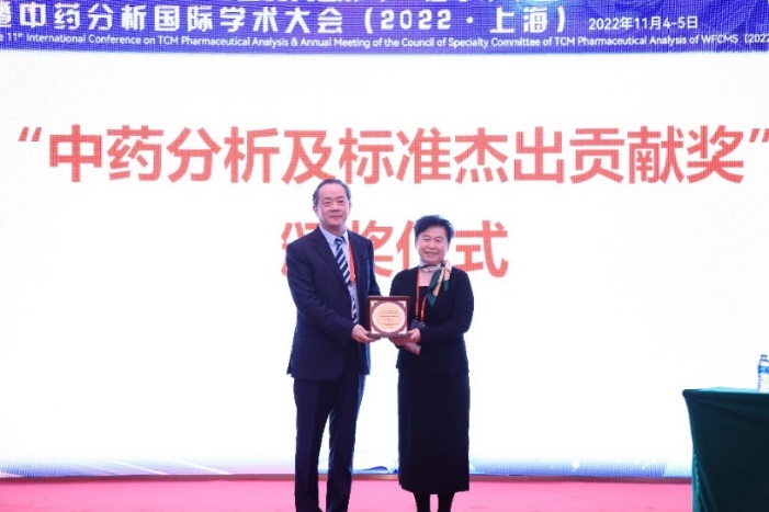 中国科学院分子植物科学卓越创新中心研究员陈晓亚、中国药科大学教授李萍、beat365官方网站教授王峥涛、复旦大学药学院教授陈道峰、南京农业大学教授程宗明、沈阳药科大学教授殷军、上海市食品药品检验研究院主任药师季申、上海交通大学教授林厚文、海军军医大学药学院教授张磊、世界中联中药分析专业委员会秘书长吴婉莹等知名专家出席开幕式。李萍获“中药分析及标准杰出贡献奖”,果德安研究员为其颁奖。