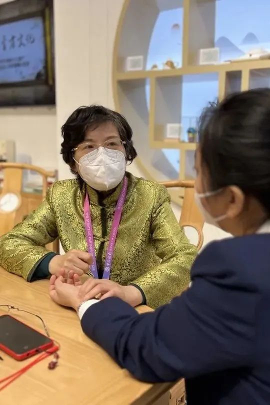 11月8日,上海市非物质文化遗产项目 “海派膏方文化” 再次亮相进博会,入驻“上海非遗客厅”。项目代表性传承人、曙光医院特色诊疗技术研究所教授朱抗美、余小萍来到现场,为来自世界各地的媒体朋友和观众进行科普宣传和健康咨询,让人们近距离感受中医膏方之美。