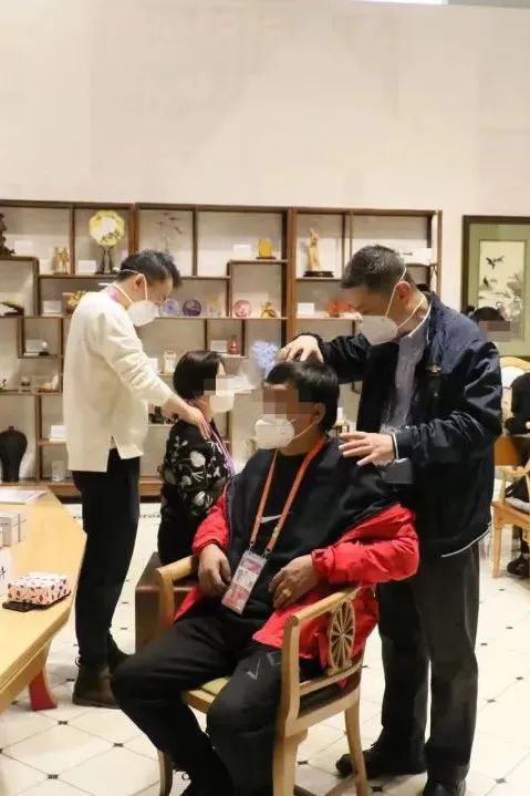 11月4日,岳阳中西医结合医院推拿科主任孙武权和主治医师邵盛代表国家级非物质文化遗产“丁氏推拿疗法”亮相“上海非遗客厅”,为来自世界各地的记者朋友和现场观众进行推拿科常见病的健康科普,并演示“一指禅”推法和㨰法等“丁氏推拿”流派特色手法,让观众们亲身体验了“丁氏推拿疗法”的深厚功力。这是国家级非物质文化遗产项目“丁氏推拿疗法”首次入驻进博会,也是本届进博会上首个亮相“上海非遗客厅”中医养生互动专区的中医药类非遗项目。