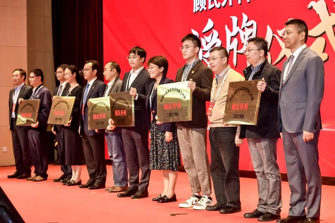 与会领导为顾氏外科在上海、江苏、浙江、江西、山西、新疆等省市新增的共计17个“全国中医学术流派传承工作室顾氏外科二级工作站”授牌。目前顾氏外科以“顾氏外科优势病种诊疗中心”“顾氏外科二级工作站”“海派肛肠党建联盟”等模式辐射全国,推广顾氏外科特色诊疗技术,真正落实特色中医药诊疗惠民利民的举措。
