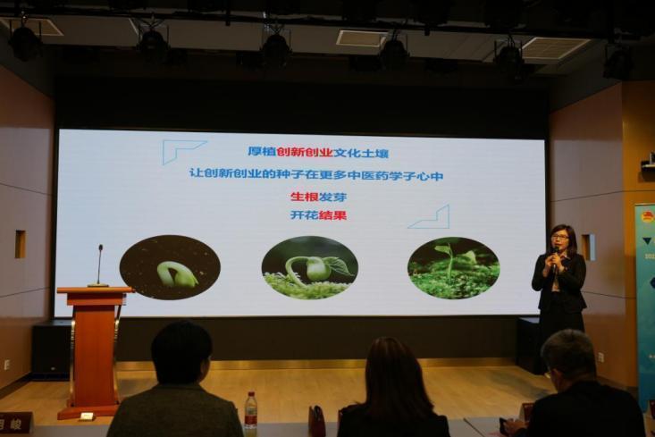 中药学院党委副书记王倩蕾从培养目标、授课方式、导师匹配及预期成果等方面全面介绍本期“青囊”创新创业研习营的总体情况。她表示,“青囊”创新创业研习营将系统性地引领学生开好创新创业的头,帮助学生打通与专业导师的沟通渠道,为学生提供施展创意和才华的舞台。她希望学员们在“青囊”创新创业研习营这片沃土上种下种子,用心血和汗水浇灌,期待它生根发芽、开花结果。