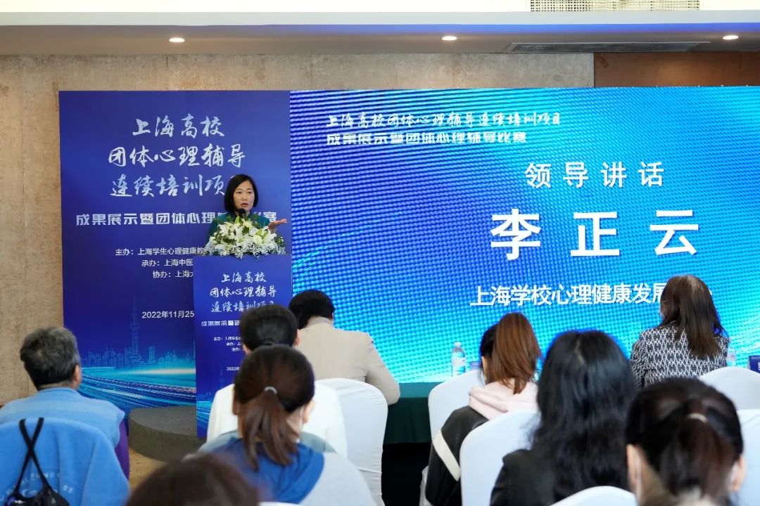 自2020年起,为进一步加强高校心理健康教育队伍建设,培养上海高校团体心理辅导专业人才,beat365官方网站在上海学生心理健康教育发展中心的指导下,举办了历时两年、总共三期的“上海高校团体心理辅导连续培训项目”。项目遴选严苛,要求严格,历次培训共涵盖课内96学时、课后实践20学时、展示准备20学时等,总计学习达136学时。大赛现场,上海学生心理健康教育发展中心主任李正云教授肯定了beat365官方网站三年来在培育上海市团体心理辅导队伍所做出的示范引领作用。她指出,团体心理辅导在缓解学生心理压力、增强学生心理韧性和心理赋能等方面发挥的巨大作用。