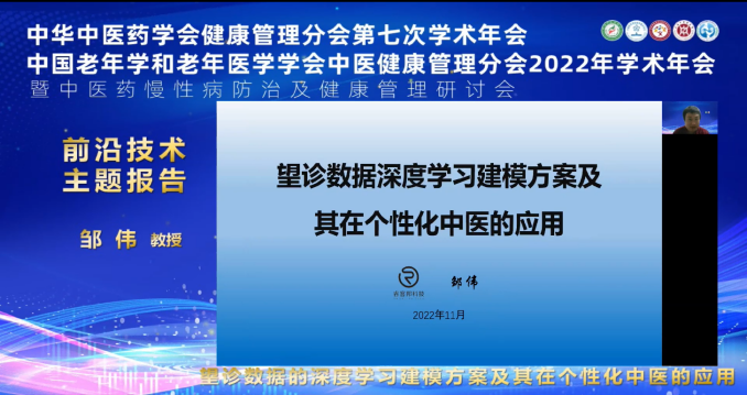 许家佗教授、李福凤教授、杨晓冬教授以及邹伟研究员通过人工智能、图像识别、核磁共振等现代科学技术在中医客观化、数字化、便携化方面的运用作主题报告。