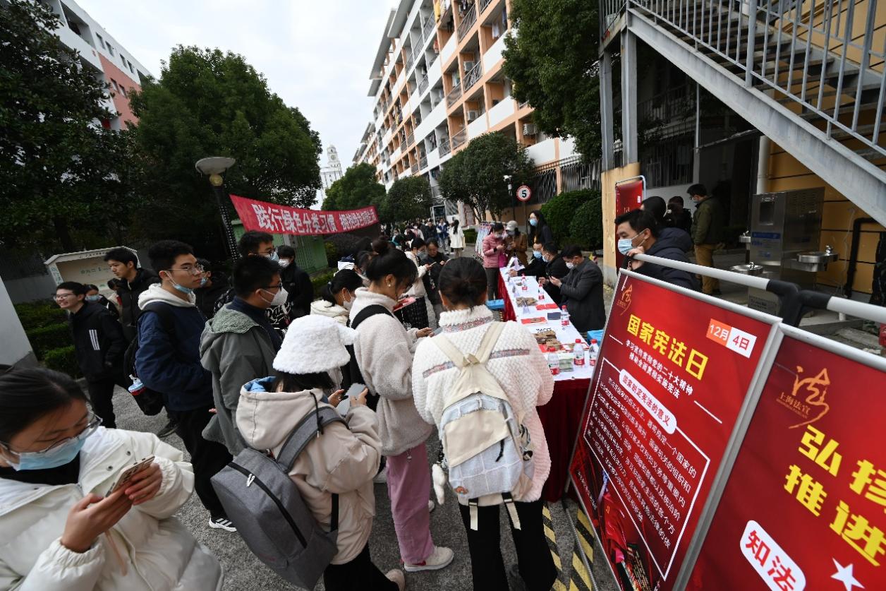 12月7日,为进一步加强校园法治教育,学校联合张江司法所在学生园区开展宪法宣传周线下主题教育。现场邀请律师为师生提供义务法律咨询,并派发《中华人民共和国宪法》读本等。活动现场气氛热烈,师生纷纷踊跃参与法律知识竞答,律师们也积极为师生解答法律问题。本次主题教育不仅有效推进法律服务在校园的覆盖面,营造了beat365官网浓厚的法治宣传教育氛围,同时也提高了师生的法制观念,增进了对宪法精神实质的感悟与理解,引导师生学会运用法律武器保护自身权益的意识和能力。