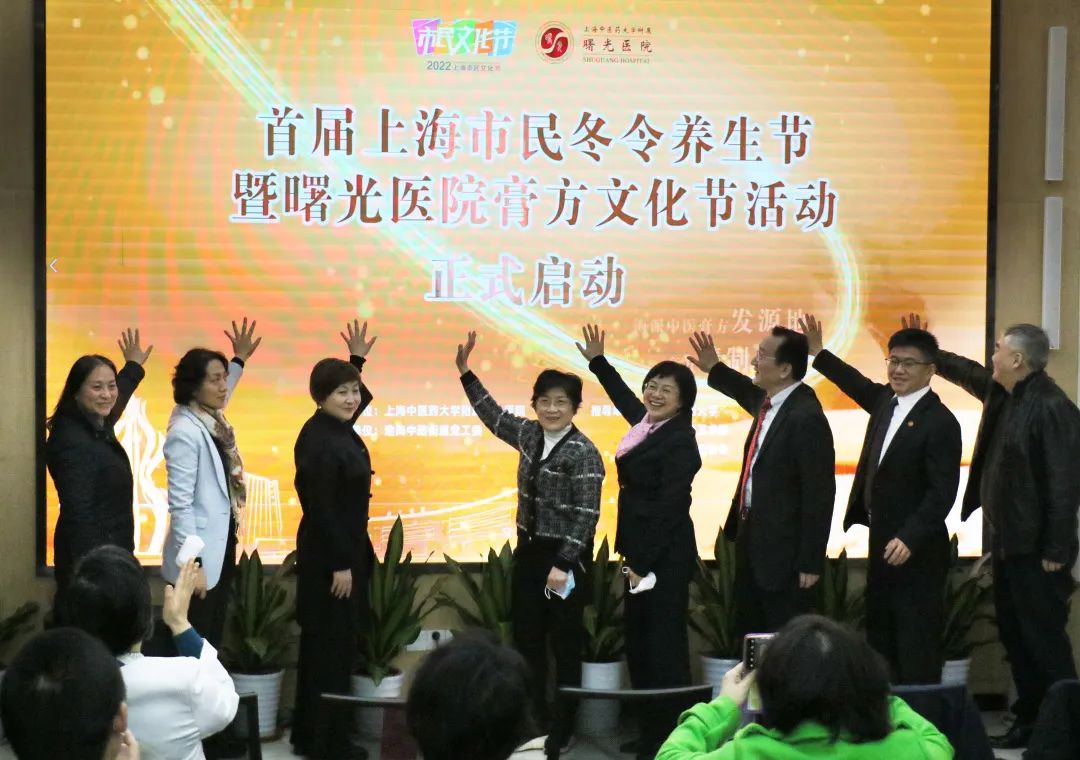 与会领导共同为上海市民冬令养生节暨曙光医院膏方文化节按下启动键。