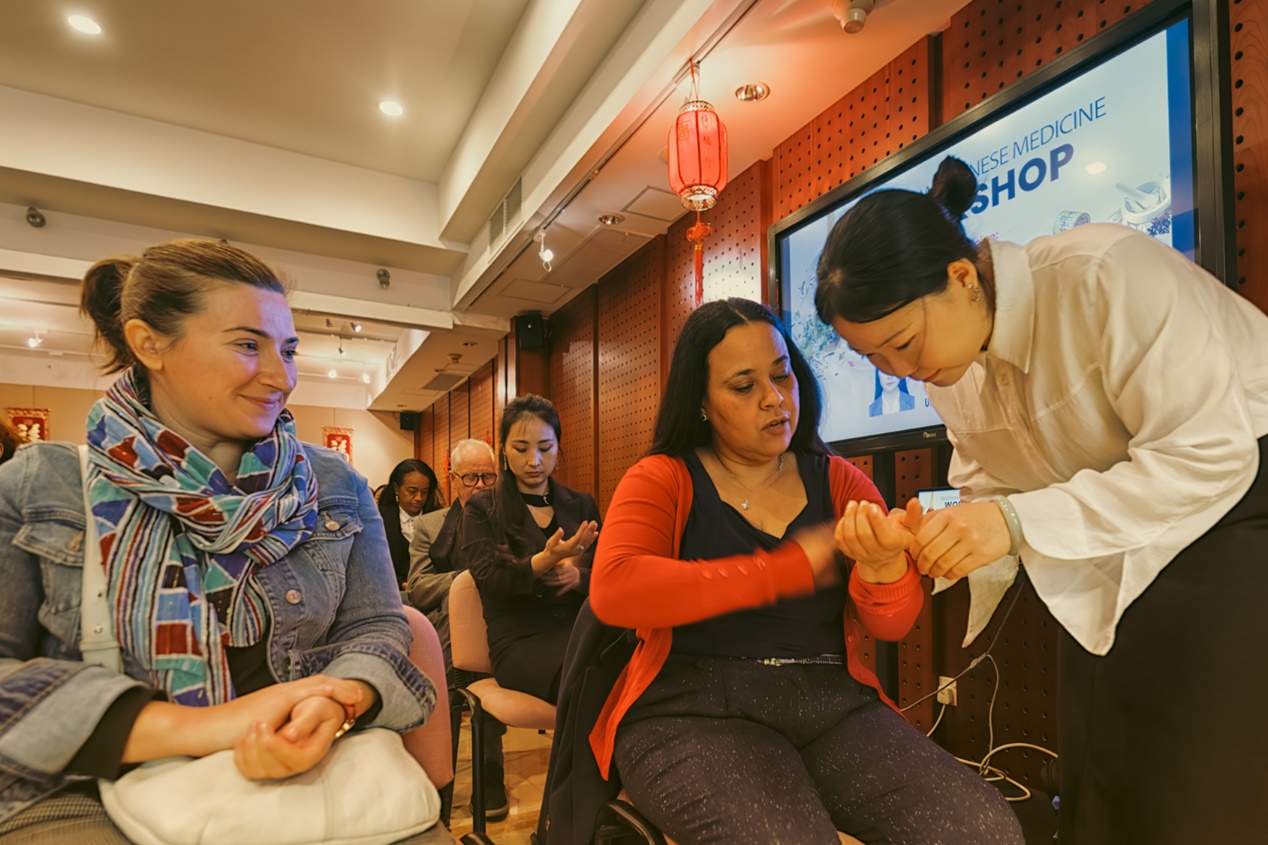 讲座后,马耳他中国文化中心进行“一穴一药治疗情绪病”的互动主题活动,张珉介绍了对症的中药及穴位,并现场一一指导按摩穴位的定位和方法。大家积极参与互动,尝试中药饮品,寻找穴位并自行按摩,体验中医药的魅力。