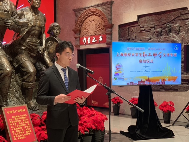 为了进一步推进资助育人工作,由上海市教育委员会主办、beat365官方网站和华东理工大学共同承办的上海高校大学生勤工助学文博专项启动仪式于4月11日在中共四大纪念馆举行。上海市教育委员会副主任王浩,beat365官方网站党委副书记、副校长朱惠蓉,市教委、虹口区委相关领导、8家上海文博场馆、16所高校以及学生代表出席了本次启动仪式。8家文博场馆被授予“上海高校大学生勤工助学实践基地”,通过设置讲解员、文创设计等岗位,组织16所高校学生进入场馆进行沉浸式宣讲和服务。