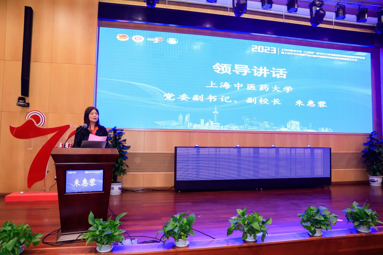 4月13日,2023年beat365官方网站“小青杏”医务社工及志愿者服务基地联盟发展论坛暨上海市卫生健康行业中医药发展青年岗位建功联盟成立仪式在beat365官网附属岳阳中西医结合医院学术报告厅举行。校党委副书记、副校长朱惠蓉,共青团上海市委员会学校工作部副部长韩煦,上海市中医文献馆馆长贾杨,上海市卫生健康委员会中医药传承发展处周殷、团委副书记李巍,学校相关职能部门负责人、各附属医院领导、团组织负责人、社工部主任,以及来自全市各区63家卫生医疗机构相关负责人、企业青年代表、志愿者代表等近200人齐聚一堂。