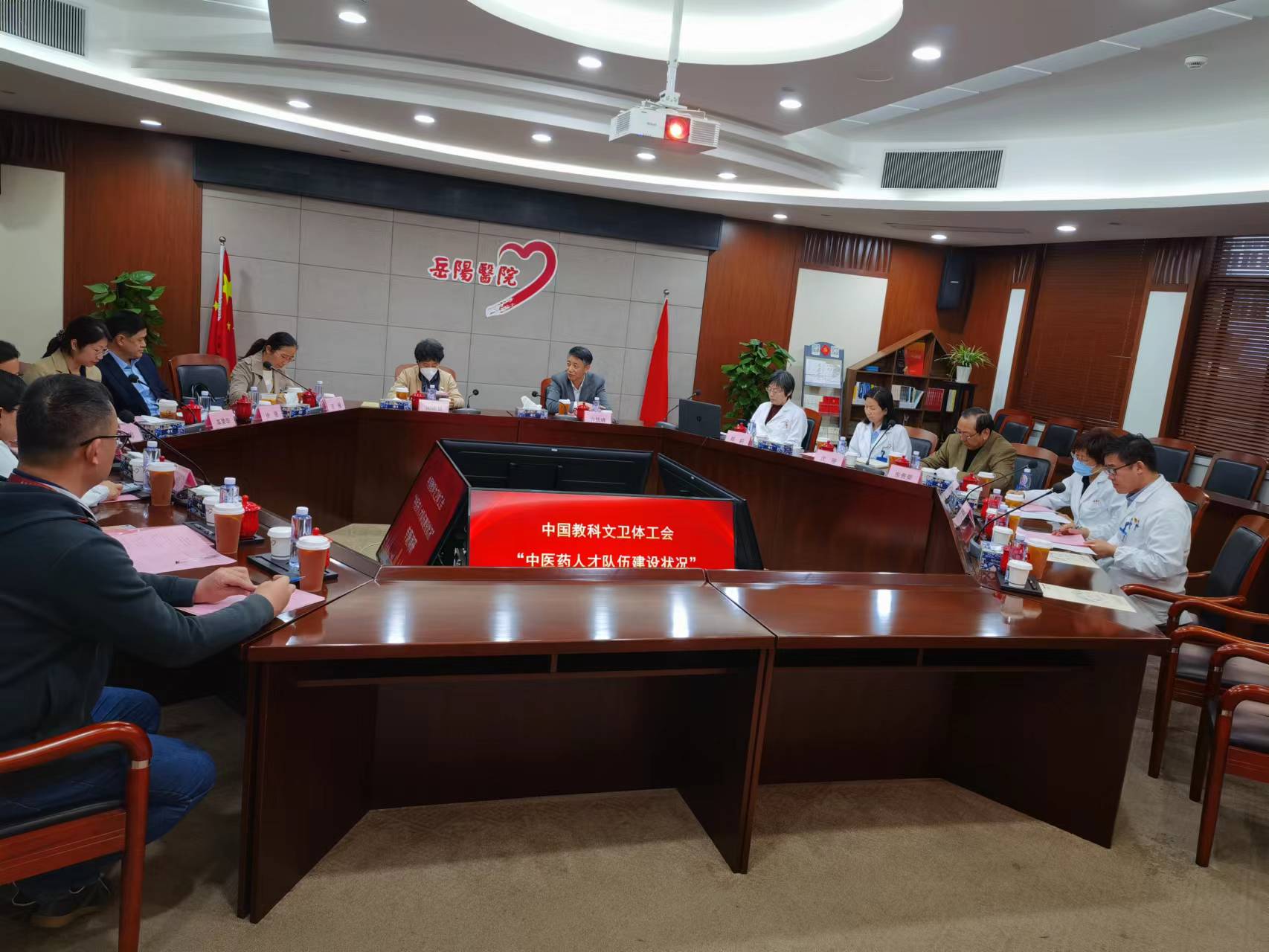 4月26日下午,中国教科文卫体工会二级巡视员周晓慧一行来beat365官网附属岳阳中西医结合医院开展“中医药人才队伍建设状况”专题调研。beat365官网党委副书记、纪委书记许铁峰,人事处处长徐强,工会常务副主席车荣华,以及附属岳阳中西医结合医院党委书记郑莉、副院长沈雁、党委办公室主任胡东晔,以及上海市名中医东贵荣等10余位中医药专家代表参加座谈会。