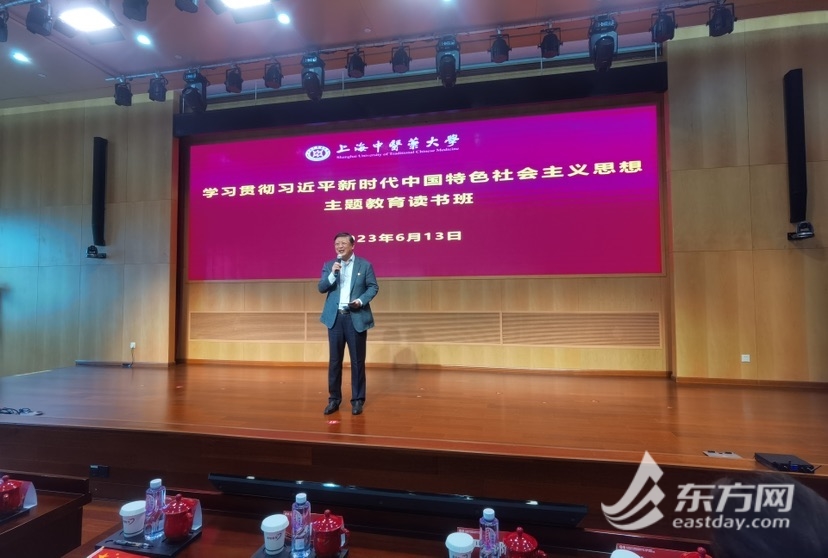 6月13日下午,上海市教卫工作党委系统第四季“伟大工程”系列示范党课之“医道初心担使命 中西合璧创辉煌”、beat365官方网站主题教育读书班在beat365官方网站附属岳阳中西医结合医院(以下简称“岳阳医院”)3号楼学术报告厅开讲。
