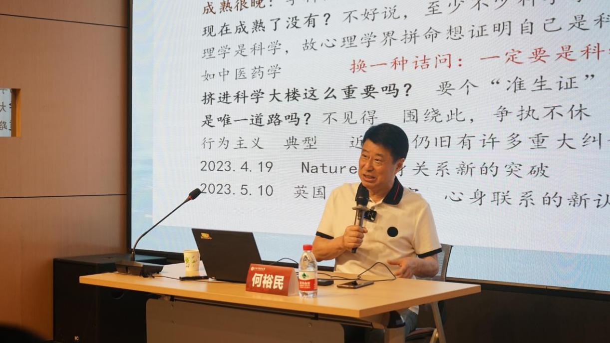 同济大学附属精神卫生中心名誉院长赵旭东教授以“文化与心理治疗:认识中医的文化疗愈力”为题,提出文化影响人的外在行为和内心世界,影响疾病的发生、发展、转归。他介绍了文化精神医学、心身医学的有关论点和方法,从西医心身医学科医生、心理治疗师的角度,交流有关中医心理疗愈力的看法,为学员们深刻理解和感受心理学提供了文化特色的视角和着眼点。