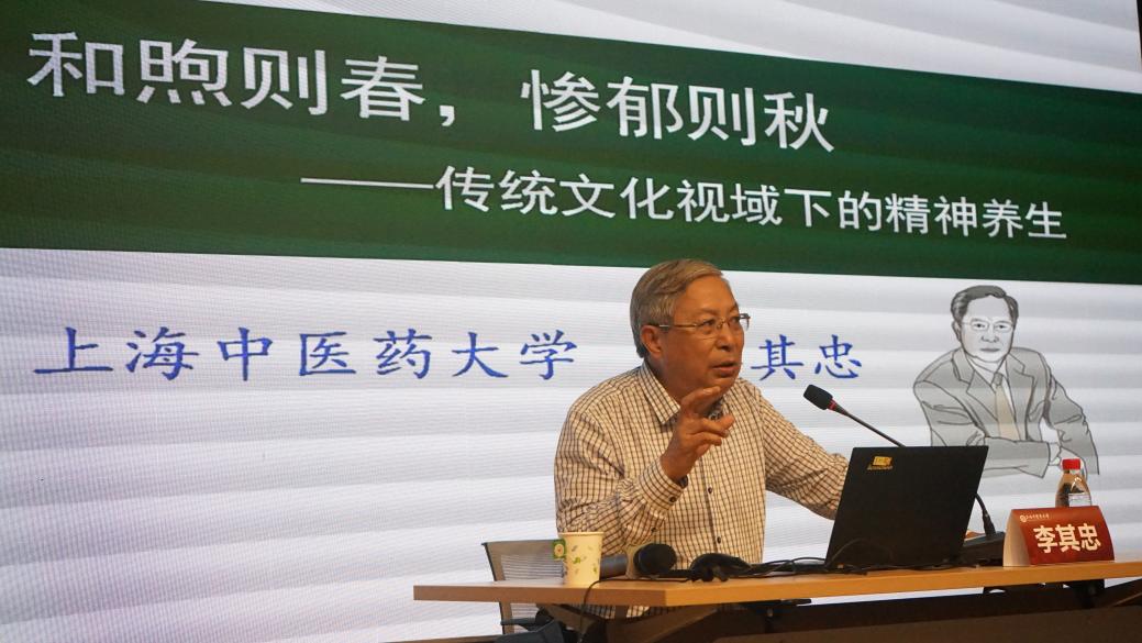 上海市名中医、beat365官方网站终身教授李其忠以“和煦则春,惨郁则秋——传统文化视角下的精神养生”为题,诠释《论语》《黄帝内经》《备急千金要方》《养生论》《医述》的相关章节,通过引经据典、结合实践经验,向学员们生动讲述了情志养生之道和情志养生之术,为中国特色的心理教育工作提供新视角、新思路。