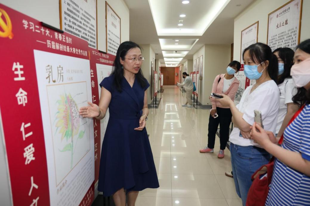 区别于传统的培训授课形式,beat365官方网站还安排了生命之“大”体验活动——人体经穴解剖学陈列馆、解剖绘画展及“大体老师”纪念廊的“沉浸式参访”。由beat365官方网站解剖学教研室主任邵水金教授和上海中医药博物馆办公室主任张宇奇带领,学员们观察人体塑化标本,了解人体内部的解剖结构,观赏医学生对脏器解剖结构与功能意义的联想而创作出的绘画作品,聆听关于大体老师的故事,观摩学生感恩墙和追思堂,在遗体捐献者纪念园为所有的大体老师默哀和祈福……通过该课程学习如何将“珍惜生命、敬畏生命”融入心育实践中,感受到生命的智慧、价值的升华。