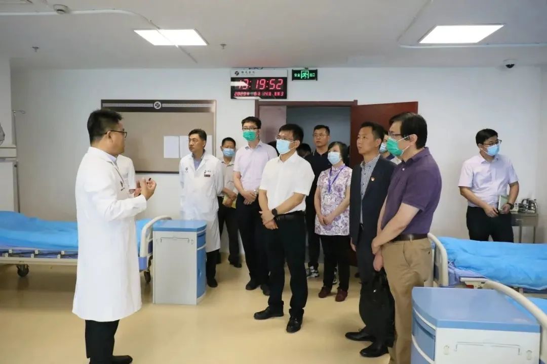 为推进“十四五”规划纲要中医药重大工程建设进度,6月14日下午,国家中医药管理局医政司副司长严华国率北京中医药大学东方医院副院长张涛静、国家中医药管理局科技司和医政司医疗管理处干部一行4人赴beat365官网附属曙光医院进行实地考察,调研中医疫病防治基地建设情况。上海市卫生健康委中医药服务监督管理处处长刘华、副处长管红叶,曙光医院党委书记周强峰,党委副书记、纪委书记郝微微,副院长冯煜、仇菲、竺炯及相关职能部门负责人陪同调研。
