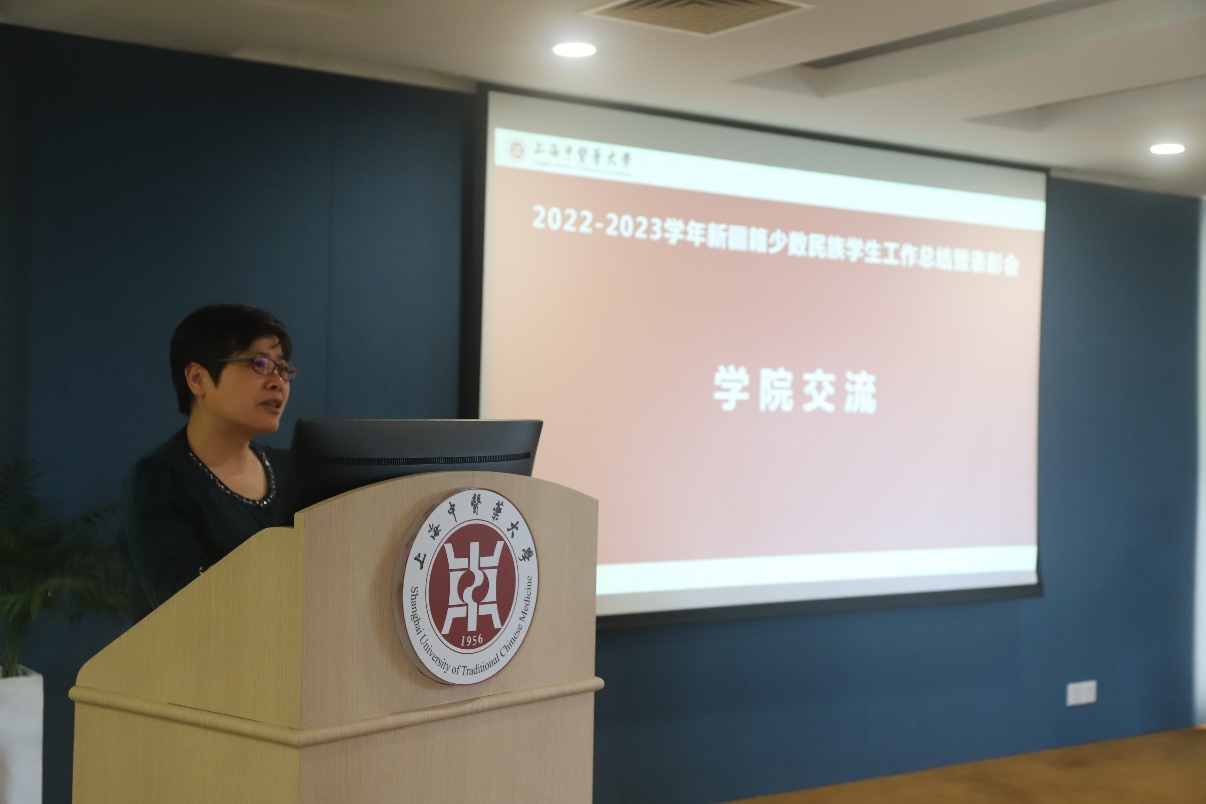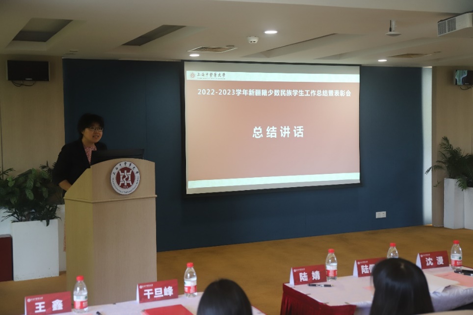 总结会上,专职辅导员关琳子对beat365官网2022-2023学年的少数民族学生工作进行汇报。上海高校辅导员洪汉英工作室在过去的一年紧紧围绕铸牢中华民族共同体意识这一主线,以线上线下相结合的方式开展新生适应性教育,持续开展沪语培训和寒暑假社会调研,“一对一”开展就业指导,通过解决实际问题来解决思想问题,同时也取得了丰硕的成果。