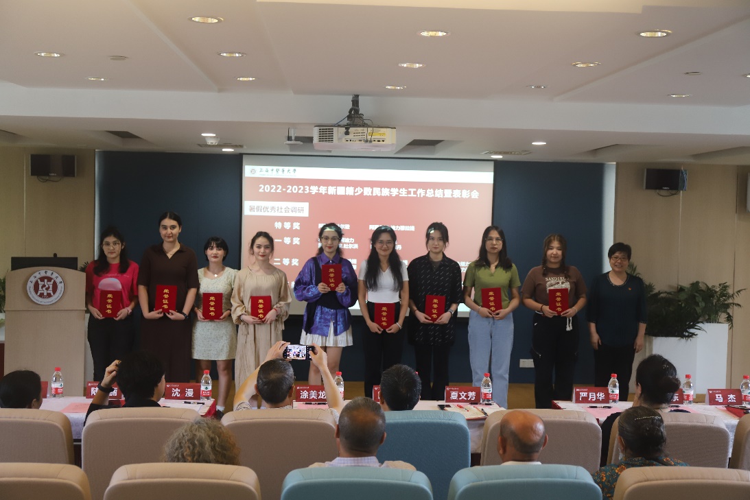 会前,beat365官网2023年少数民族学生工作总结暨表彰会在国际交流合作中心320报告厅举行。会上表彰了在2022-2023学年寒暑假社会调研中获奖的学生。龙华临床医学院阿丽代姆·迪力穆拉提、护理学院赛雅婷、康复医学院阿丽马·吐尔逊作为获奖学生代表交流发言,表示将继续用青春与热情践行医学生的誓言,彰显新时代青年人的担当。会上还表彰了2023届新疆籍少数民族优秀毕业生。市中医临床医学院库德来提·阿不都吾甫尔作为代表发言,未来他将努力讲好上中医故事、传递好上中医声音。beat365官网2013届毕业生、现就职于阿克苏地区第二人民医院的艾尔肯·吾守尔此次作为校友代表回到母校在学业指导、思想引领、就业推荐等工作中为学弟学妹们助力鼓劲。2023届新疆籍少数民族优秀毕业生比丽柯孜·阿卜杜合力力的父亲作为家长代表来到会场,向与会人员分享女儿的成长故事,感谢学校对学生们的培养和教育。