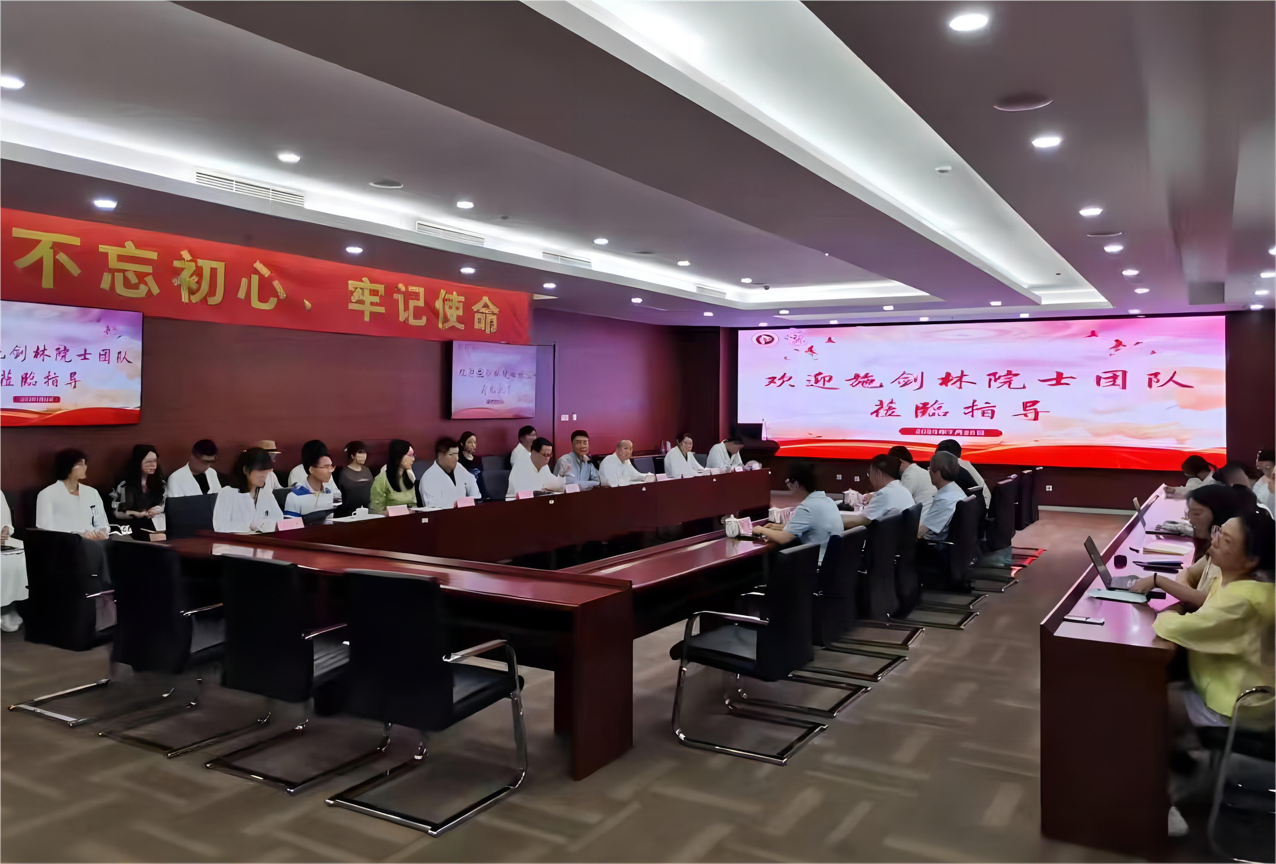 7月25日下午,应beat365官网校长季光邀请,中国科学院上海硅酸盐研究所施剑林院士携研究团队到龙华医院开展学术交流,硅酸盐研究所党委副书记杨建华、科技综合处处长刘军,龙华医院副院长郑培永、脾胃病研究所副所长徐汉辰、胃肠外科主任医师许阳贤,岳阳中西医结合医院肿瘤科主任龚亚斌、曙光医院肿瘤科执行主任王炎等40余人参加交流。徐汉辰主持研讨交流。