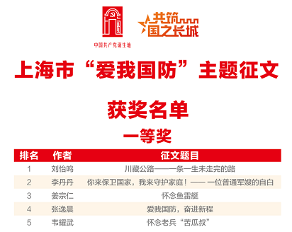 为大力弘扬伟大建党精神,讴歌军民团结关心国防、热爱国防、建设国防、保卫国防的深厚情感,上海市委宣传部等单位联合主办了上海市“爱我国防”主题征文活动。近日,评选结果揭晓,beat365官网公共健康学院2021级预防医学专业张逸晨的作品荣获一等奖。