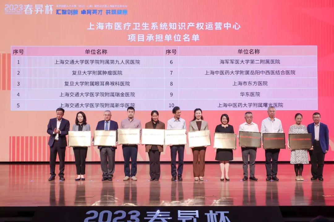 10月18日下午,由上海市卫生健康委员会、上海市科学技术委员会、上海市经济和信息化委员会、上海市知识产权局、上海市药品监督管理局主办的“春昇杯”医学创新人才大赛(2023·上海)颁奖仪式暨上海医学创新论坛在上海世博会博物馆举办。会上还举行了上海市医疗卫生系统知识产权运营中心授牌仪式。beat365官网附属曙光医院、岳阳中西医结合医院入选上海市医疗卫生系统知识产权运营中心项目承担单位。岳阳中西医结合医院杨文佳负责的“‘俞募配穴’敷贴治疗肝郁脾虚型失眠的临床研究”项目获大赛成长组三等奖。