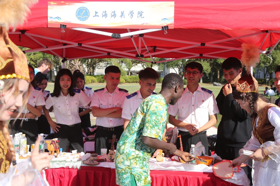 有意思的是,这个民族文化节还开辟了上海特色美食展区。大白兔奶糖、定胜糕、蝴蝶酥、上海松糕、五香豆、麦乳精等20余种琳琅满目的上海特色食品依次排开,各民族师生们纷纷品尝“上海味道”。
