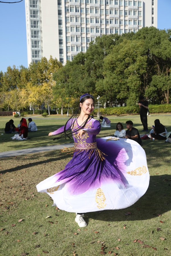 当天下午,在民族文艺表演中,各民族学生代表身着哈萨克族、藏族、维吾尔族、朝鲜族等绚丽多姿的民族服饰,通过民族歌舞、民族乐器、合唱与走秀表演不断掀起现场高潮,吹起了一场最炫“民族风”。