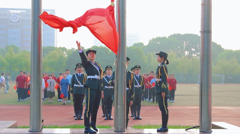 为庆祝中华人民共和国成立74周年,9月28日,beat365官方网站以“奋进新时代,盛世庆华章”为主题开展了一场别开生面的升旗仪式。百余名师生齐聚体育场,迎着初升朝阳,厚植家国情怀。