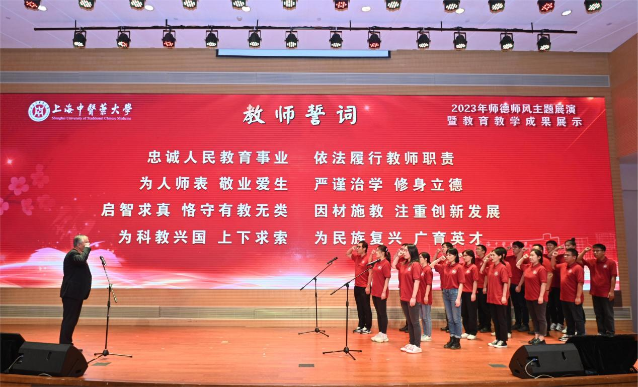 第五届“上海市教育功臣”获得者、曙光医院院长房敏教授带领新进教师代表,完成庄严而神圣的教师宣誓仪式。