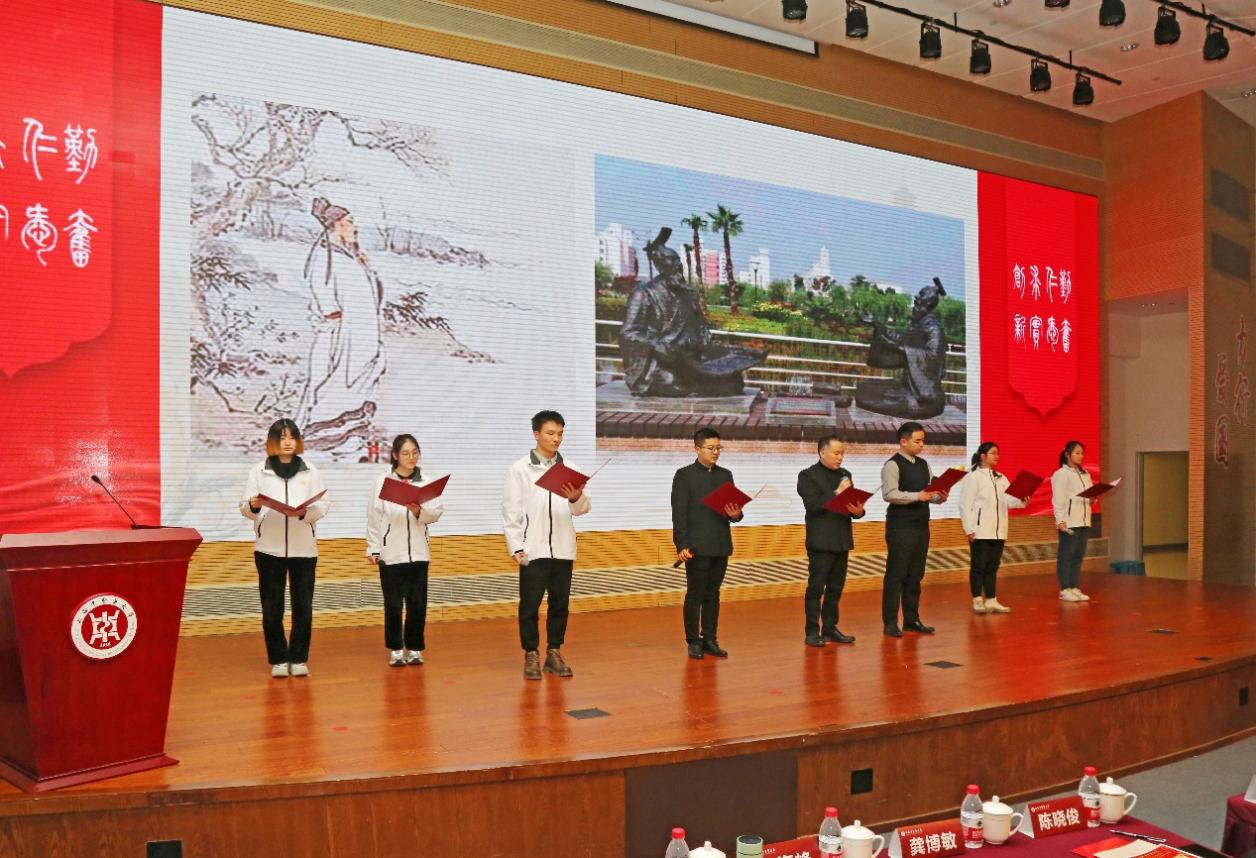大会通过总结展示的方式回顾过去一年学院学生工作,呈现党建引领更加有力、育人特色更加鲜明、育人氛围更加浓郁、育人成效更加彰显的可喜局面,展现“育人者”“奋斗者”“学习者”众心攒紧、团结奋斗、奋发向上的精神风貌。本科生党支部、学院分团委选送引双展入校情景党课《精神伟力,医路奋楫》,再现中医学子与革命先辈“隔空对话”,坚定理想信念的情境。“生生”导师团、“杏林春华”导师团将荣获2023年上海高校心理情景剧大赛三等奖的心理情景剧《萤火》搬到师生身边,2021中医学(5+3一体化)严恺洁、余永霖、韩东俊等7学生重现走出心理困境的生命力量。诗朗诵《诗词礼赞二十大,中医青春正飞扬》荣获第六届杏林杯师生朗诵赛一等奖,陈云纪念馆高智亮、“生生”导师团导师张挺、辅导员霍鹏韬携“生生”文化讲师团再诵再传党音。作为学院深耕十余年的特色品牌“闻鸡起武”,由学院分团委副书记蒋日磊、体育部国际武术交流中心主任王宾和学生陈昭羽等演绎八段锦传递“文明其精神,野蛮其体魄”的时代强音。