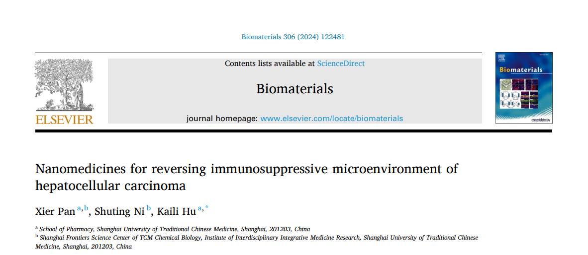 中药学院胡凯莉研究员团队在Biomaterials发表纳米药物逆转肝细胞癌免疫抑制微环境综述文章