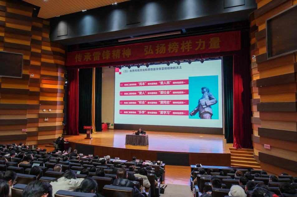 上海建桥学院党委书记杨伟人以“弘扬雷锋精神,争做时代先锋”为主题为全体师生上课