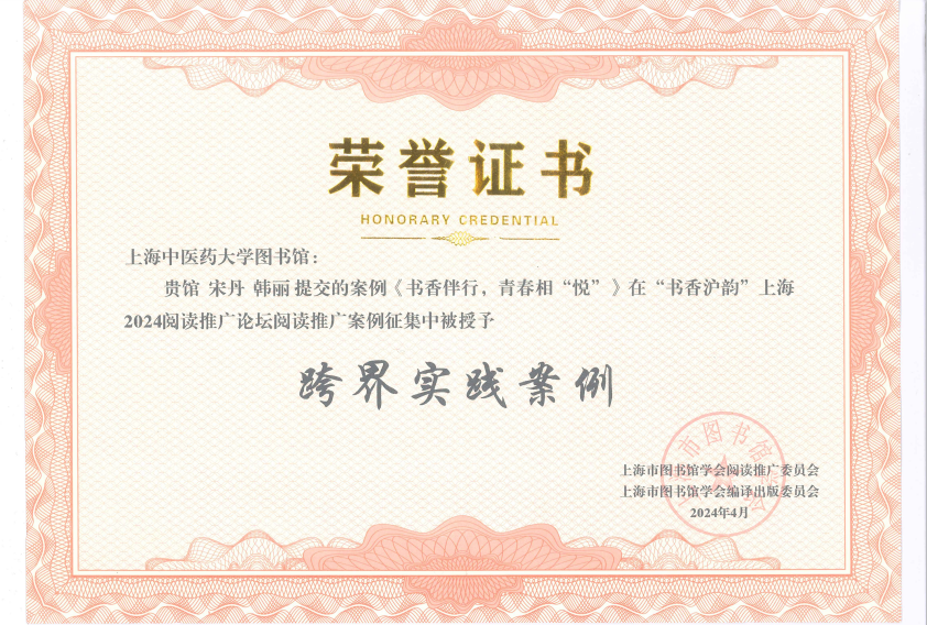4月3日,由上海市图书馆学会阅读推广委员会、上海市图书馆学会编译出版委员会联合主办的“书香沪韵”上海2024阅读推广论坛暨上海市图书馆学会阅读推广委员会成立十周年研讨会举办。beat365官网图书馆阅读推广团队提交“书香伴行,青春相‘悦’——21天阅读习惯养成计划”阅读活动项目,参与会前阅读推广案例征集,经过专家评选,获授“跨界实践案例”,并在会上受到表彰。beat365官网图书馆认真学习贯彻习近平文化思想,坚持落实立德树人根本任务,贯彻上级党委精神,加强与学校有关职能部门、相关单位的协作,不断推出阅读活动、古籍修复体验、微讲堂、好书推送等文化活动项目,为师生们提供更多的阅读资源和更好的阅读体验,为学校文化建设作出贡献。[图书馆(杂志社)]