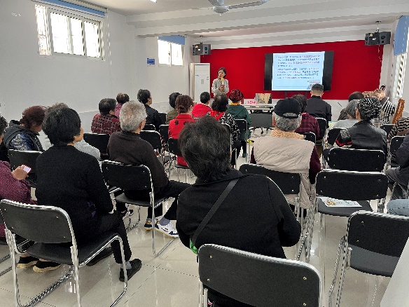活动主会场咨询点设立在凤城三村小花园,公共健康学院孙丽红副教授与社区全科医生、中医医生提供现场义诊,用中西医结合的方式为社区居民提供面对面的肿瘤咨询服务,给出个性化健康指导意见,引导居民养成良好的生活行为习惯,积极预防疾病发生,让防癌抗癌知识深入人心。义诊结束后,孙丽红开展题为“肿瘤患者的筛查和膳食调理”的健康讲座,深入浅出地讲解癌症基本知识及预防和治疗的方法,普及抗癌健康知识,吸引大量社区居民踊跃参加。