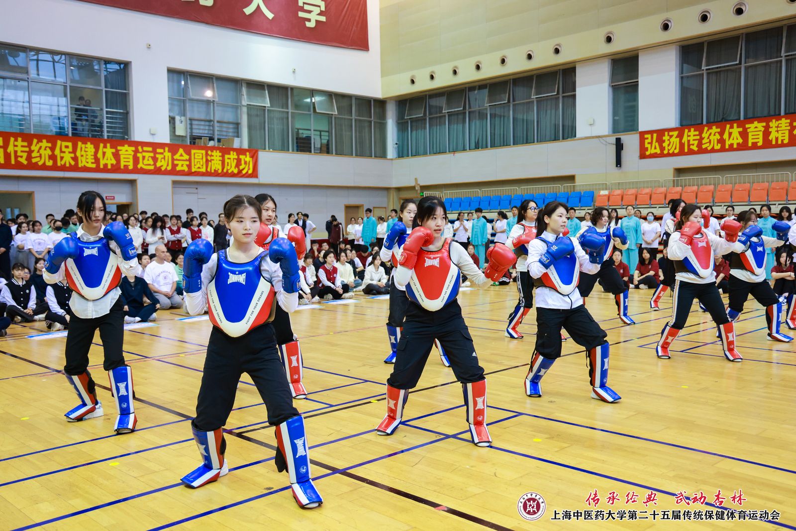 三百余人同场共练八段锦,刚柔并济、动静相宜;舞龙、武术、健美操、散打、短兵令人目不暇接……日前,“传承经典 武动杏林”beat365官方网站第九届武术艺术文化节暨第二十五届传统保健体育运动会开幕,太极拳、八段锦、五禽戏、马王堆导引术、大舞等具有深厚文化底蕴的传统项目,及功夫扇、太极八法五步等近几年新兴的武术与功法项目均在此次运动会上展示、切磋、推广。