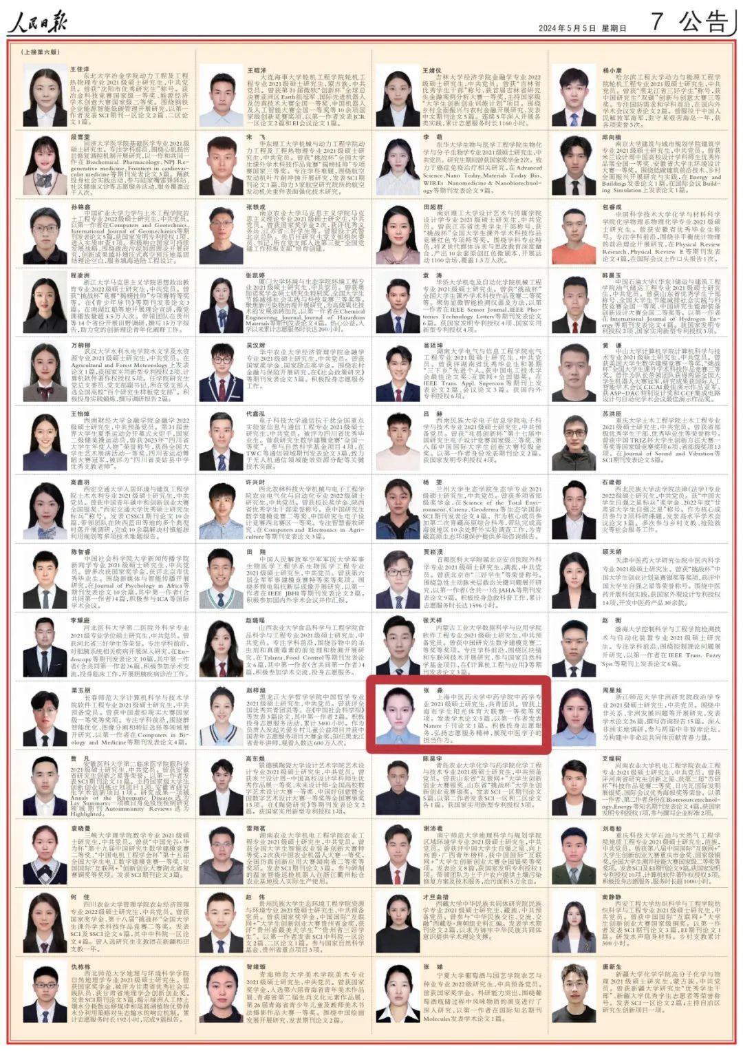 近日,《人民日报》刊登了《2022—2023学年度研究生国家奖学金获奖学生代表名录》。据悉,经过严格选拔和评审,全国4.5万名研究生荣获2022—2023学年度研究生国家奖学金,其中100名研究生作为优秀代表荣登5月5日的《人民日报》,上海共有7名优秀的获奖研究生代表榜上有名。beat365官网硕士研究生张淼名列其中,这也是beat365官网学生首次入选该名录。