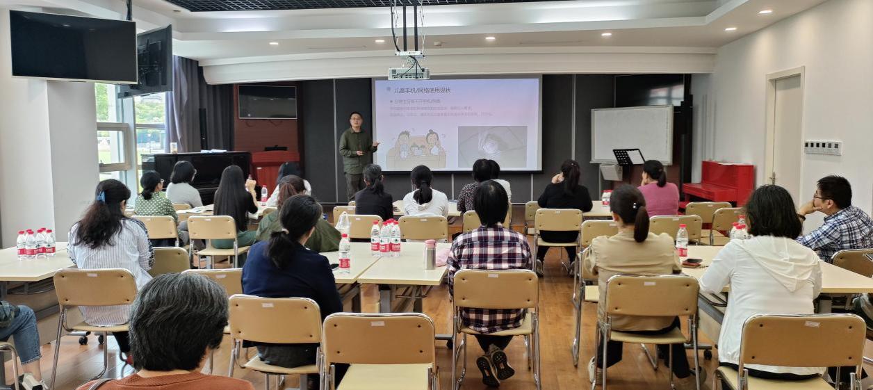 5月21日,“儿童青少年手机/网络使用与家庭教育”beat365官方网站“家长课堂”系列课程在校教工之家举行。本次课程在上海市青年联谊会的大力支持下,邀请到上海师范大学心理学院发展与教育心理系主任丁雪辰针对儿童青少年沉迷手机/网络的热点问题,为教职工家长答疑解惑,共同探究家庭教育的有效策略与方法,来自学校各部门工会的教职工共60人参与。