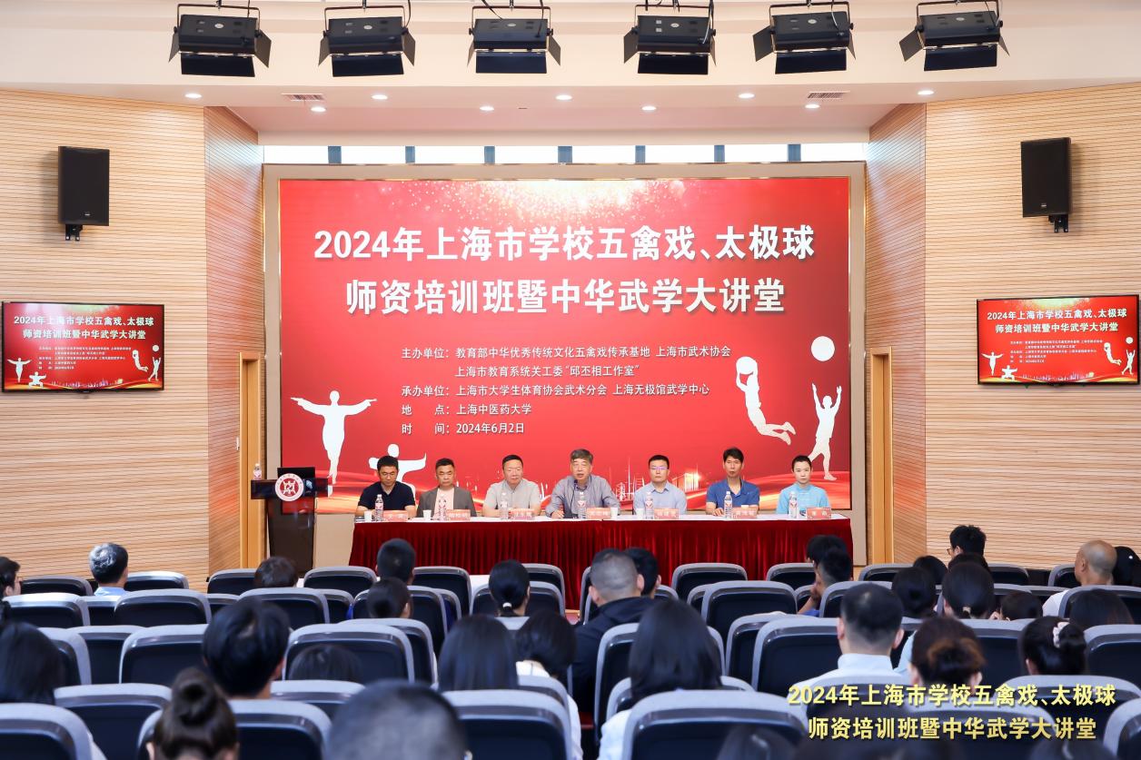 为促进中华优秀传统体育文化传承发展,深入推进中华优秀传统体育项目进校园,进一步提高学校武术教师理论及教学实践水平,6月2日,由教育部中华优秀传统文化五禽戏传承基地、上海市武术协会、上海市教育系统关工委“邱丕相工作室”主办,上海市大学生体育协会武术分会、上海无极馆武学中心承办的2024年上海市学校五禽戏、太极球师资培训班暨中华武学大讲堂在beat365官网举办,来自沪上50家单位的70余名武术教师参加,同时也吸引了beat365官网40余名热爱武术的大学生参会。