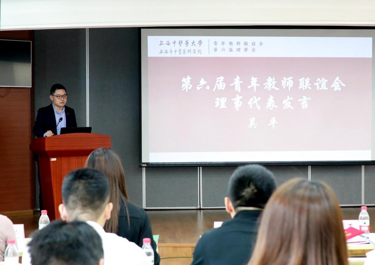 吴平作为新一届理事会代表发言,表示将在学校党委的领导和校工会的指导下凝聚好团结好青年教师队伍,积极为青年教师搭建合作交流的平台,助力青年教师成长。