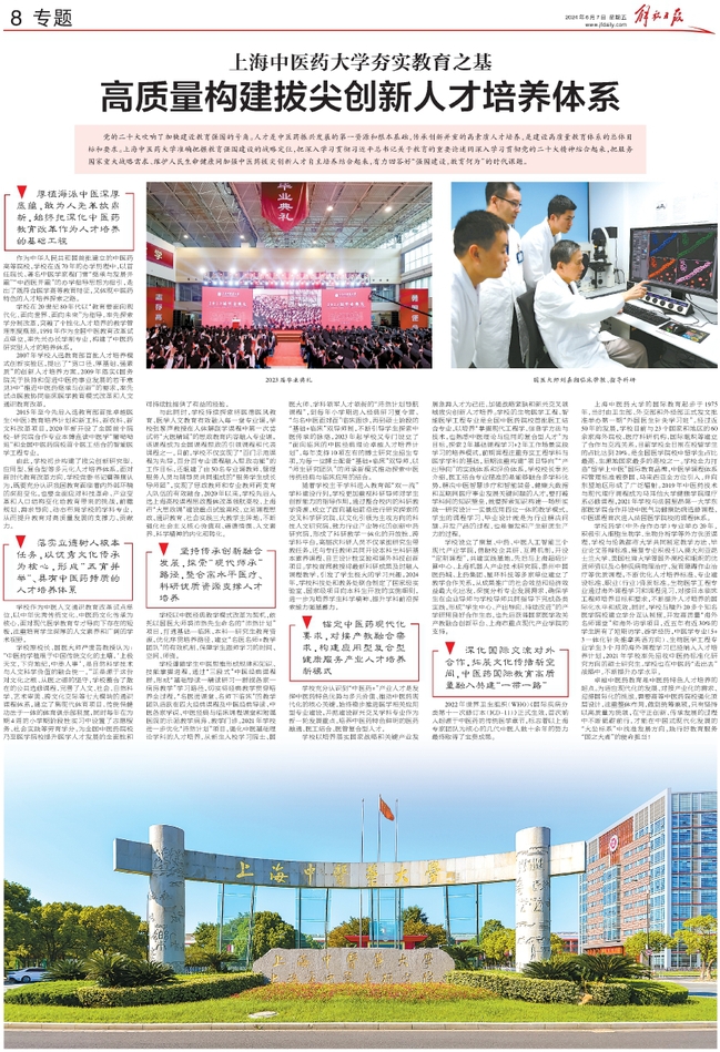 解放日报8版:beat365官方网站夯实教育之基高质量构建拔尖创新人才培养体系