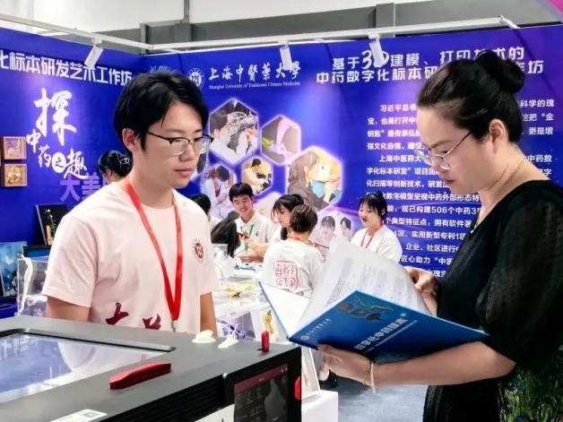 活动现场,教育部党组成员、副部长、总督学王嘉毅,湖北省委常委、襄阳市委书记王祺扬,上海市教委副主任王浩,上海市教委体卫艺科处处长陈华,在beat365官网党委副书记、副校长孟煜的陪同下,参观了beat365官网“基于3D建模、打印技术的中药数字化标本研发艺术工作坊”展区,并与工作坊师生交谈。学生为大家介绍3D打印模型标本技术在建立中药材数字化标本中的积极应用,近距离感受中医药文化与数字科技相结合的魅力,展现beat365官网美育培育创新意识、激发创新创造活力、服务经济社会发展的生动实践。