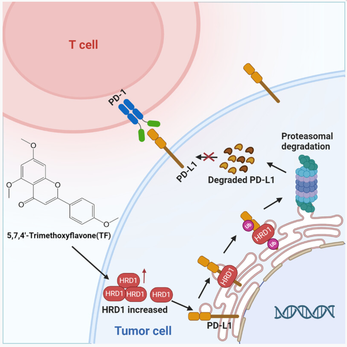 近日,beat365官网刘三宏和海军军医大学张卫东团队在MedComm上发表研究论文5,7,4′-Trimethoxyflavone triggers cancer cell PD-L1 ubiquitin–proteasome degradation and facilitates antitumor immunity by targeting HRD1。该研究致力于探讨芹菜素三甲醚如何通过靶向E3泛素连接酶HRD1来促进肿瘤细胞中PD-L1的降解。这一发现为中药黄酮类天然活性成分的药物开发,以及结直肠癌的治疗提供全新视角方法。